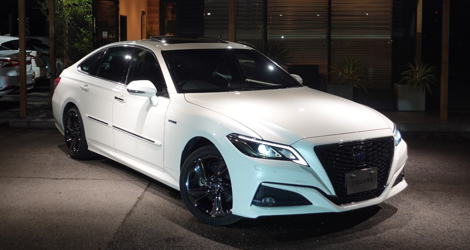 Hybrid 2.5 sunroof, RS genuine 18-inch wheels, collision mitigation and following functions, blind spot monitor, HUD, lane keep, dashcam, heated seats, parking support brake, Bluetooth, and ETC (White Pearl Crystal Shine)